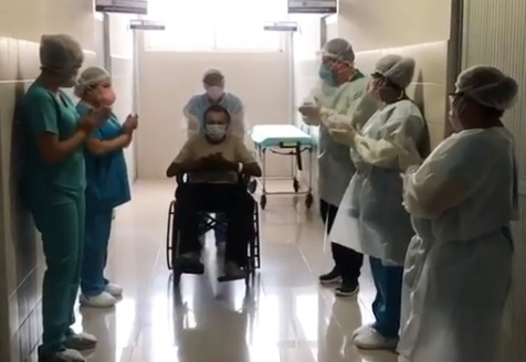 Ao deixar o Hospital, o homem foi aplaudido pela equipe de profissionais da unidade. Ele agora está em isolamento social.