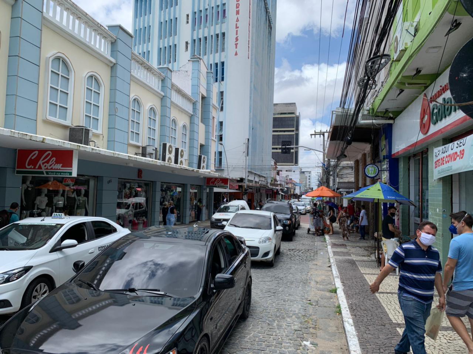 A restrição da capacidade gera aglomerações em frente a cartórios e agências bancárias. Já o trânsito intenso e o fluxo lento de veículos são marcas do entorno da Praça José de Alencar e vias adjacentes.