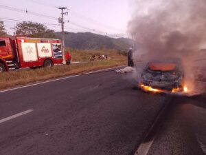 Um veículo de passeio colidiu com duas vacas, neste fim de semana entre os municípios de Pacatuba e Guaiúba. Felizmente, o condutor do veículo, escapou ileso, mas as chamas consumiram seu veículo.
